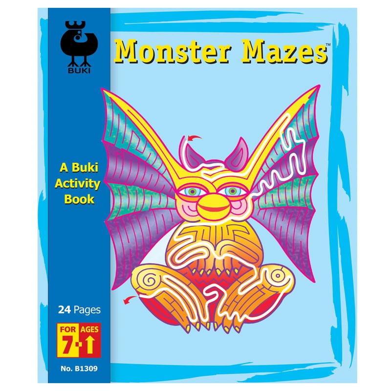 Monster Mazes. Ages 7 & Up. Large Buki Books are 8” x 9.5” activities that stimulate a higher level of skill and development. PK 6 min.
